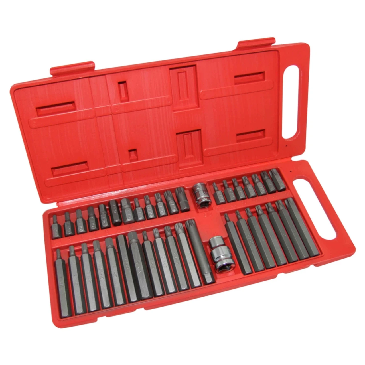 Includes hex, spline and star bits (30mm and 75mm lengths) plus 2pc bit holders