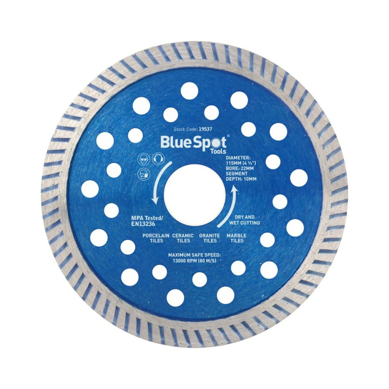 - Diameter: 115mm (4 ½”) / Bore: 22mm / Segment depth: 10mm