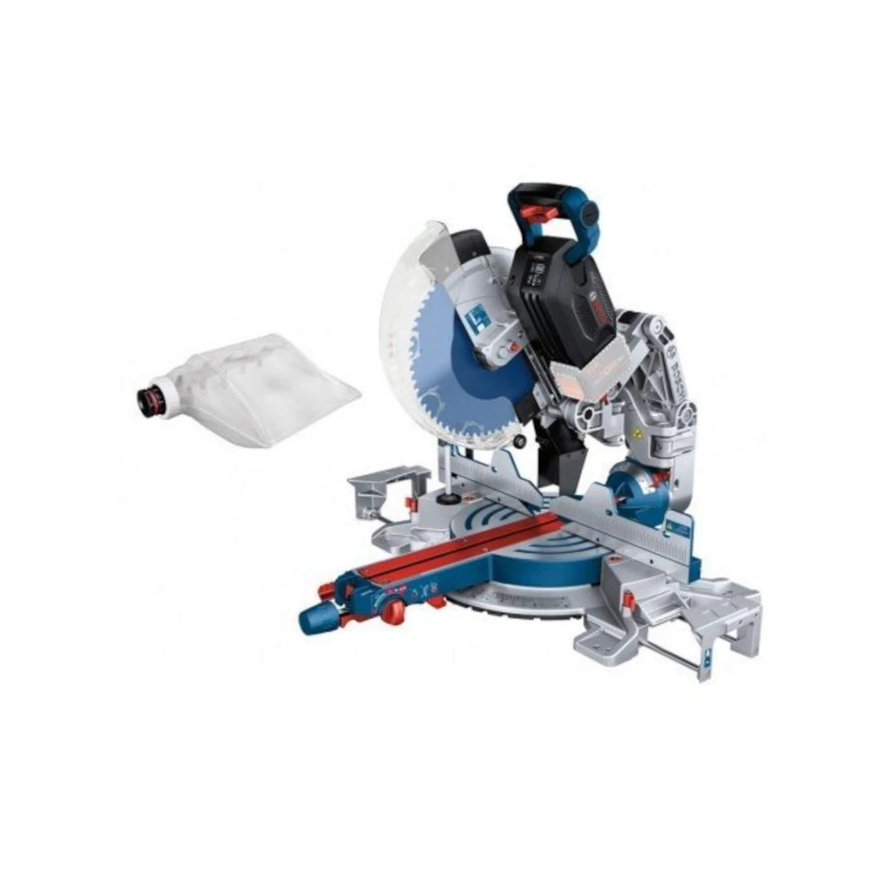 The Bosch GCM 18V-216 DC Professional Cordless BITURBO Mitre Saw is the fully featured mitre saw. The professional brushless 18v BITURBO motor is comparable in power to a 1600w corded saw, reaching a large cutting capacity of 70×300 mm. It offers a two-point dust extraction for a cleaner and healthier working environment and, even when its integrated side extensions are increasing workpiece control, it remains compact and easy to transport. The Bosch GCM 18V-216 DC Mitre Saw is energy efficient due to its ECO mode, which extends runtime via the user interface. The speed selection and further customisation by using the Toolboxx app makes for versatile usage with timber beams and wooden composites as well as floor panels, aluminium, and plastic, perfect for cross, mitre, and bevel cuts. It is compatible with the Click & Clean System, all Bosch GTA mitre saw stands, and all Professional 18V batteries and chargers (Bosch Professional 18V System). For maximum power, use a Bosch ProCore Battery Pack.