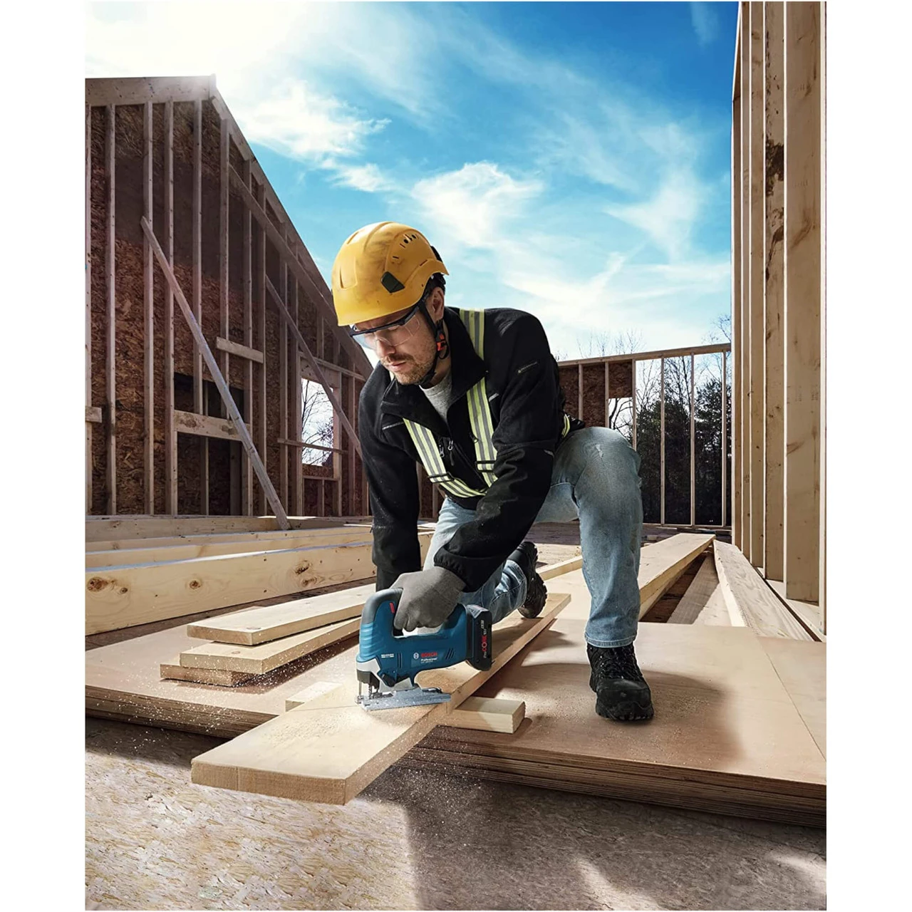 The Bosch GST18V-125B 18V Brushless Professional Jigsaw Body Only is a Brilliant Jigsaw for any tradesman or DIY enthusiast to have in their arsenal. Due to its Brushless Motor, the tool can get up to 3,500 spm. With other handy features like LED lighting and Speed selection settings, this device can be used for a variety of tasks and materials like solid wood or chipboards and other ticker and harder materials. This can be used for curved or cross-cuts and can be used with external dust extraction.
