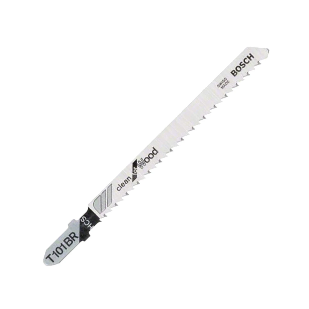 The Bosch Jigsaw blade T101BR delivers clean straight cuts in wood. The precision-ground teeth and taper-ground body is key to producing clean cuts. The T101BR is made from a high carbon steel material and is appropriate for cutting softwood and non-abrasive woodworking materials. The reverse tooth design makes for a tear-free top surface through all cuts.
