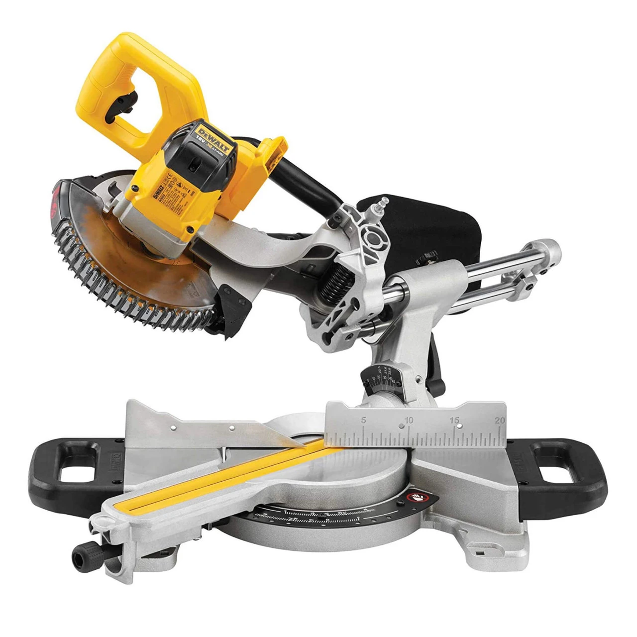 The saws horizontal rails create additional capacity for larger materials while an aluminium base construction provides stability to the saw while still retaining its portability. It also features mitre and bevel angle detents for quick and easy set-up of the saw.