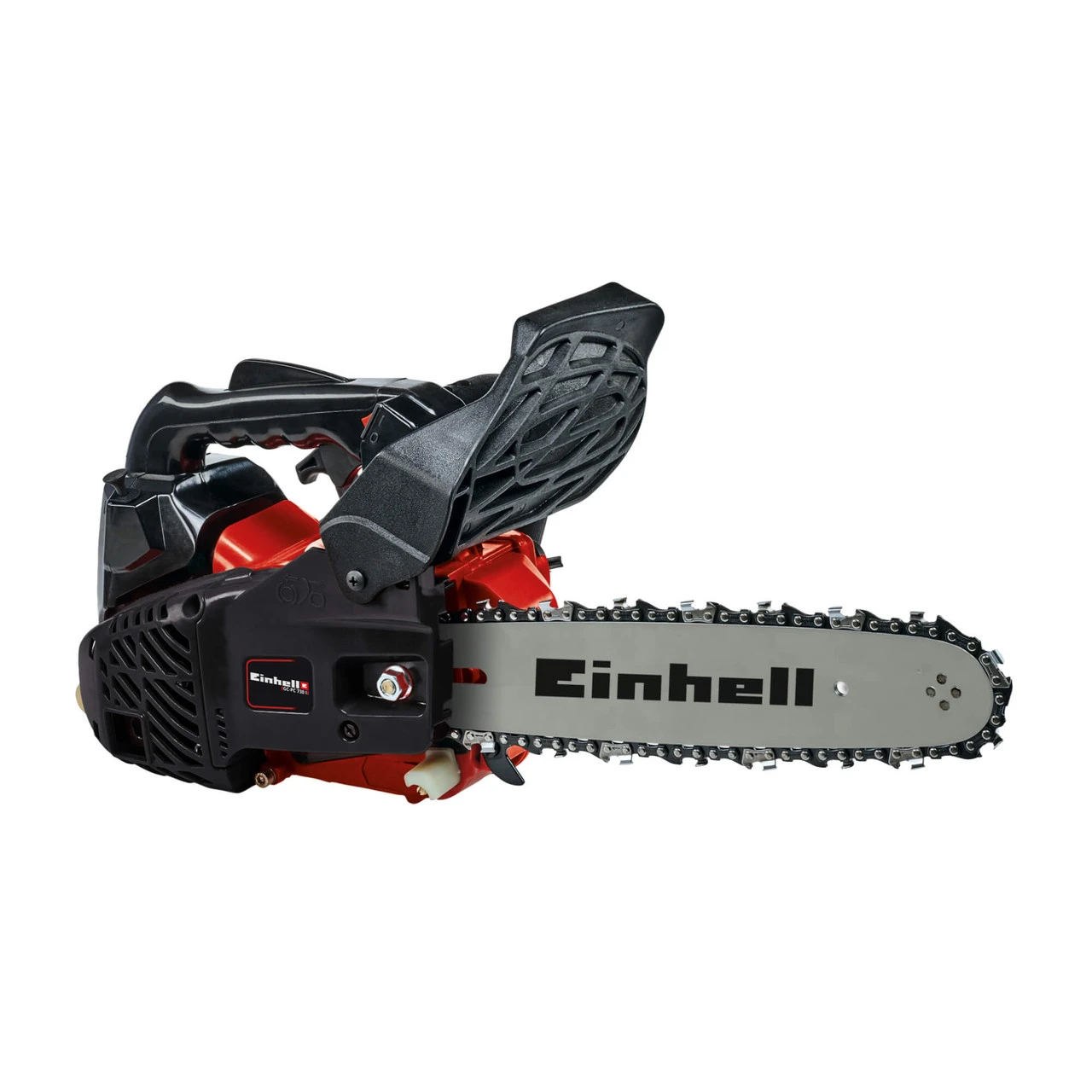 The Einhell petrol chainsaw is equipped with kickback protection and instant chain brake along with automatic chain lubrication. This saw is fitted with an anti-vibration top handle to provide a sturdy secure grip. This tool is fitted with a digital ignition and choke and primer to allow for a fast start-up.