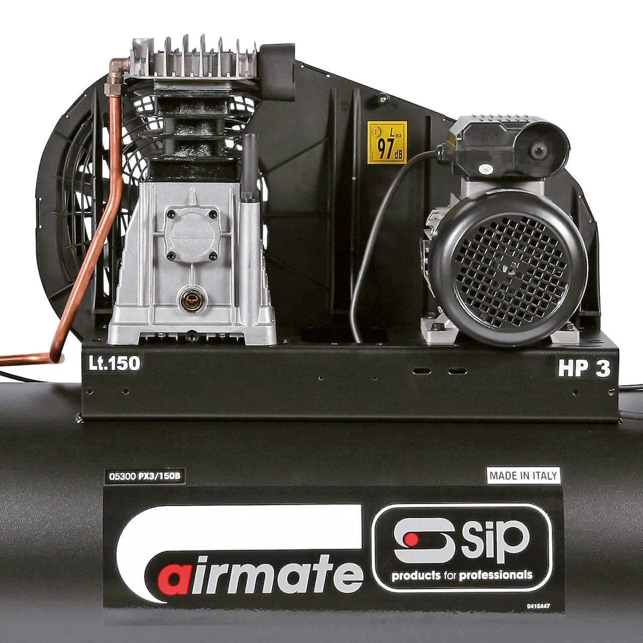 The SIP PX3/150-SRB 150ltr Belt Drive Compressor utilises heavy-duty components including finned manifolds, an oversized crankcase and aluminium aftercooler to provide high-quality compressed air with improved moisture reduction. This means a reduced weight and increased corrosion resistance for durability and long life.