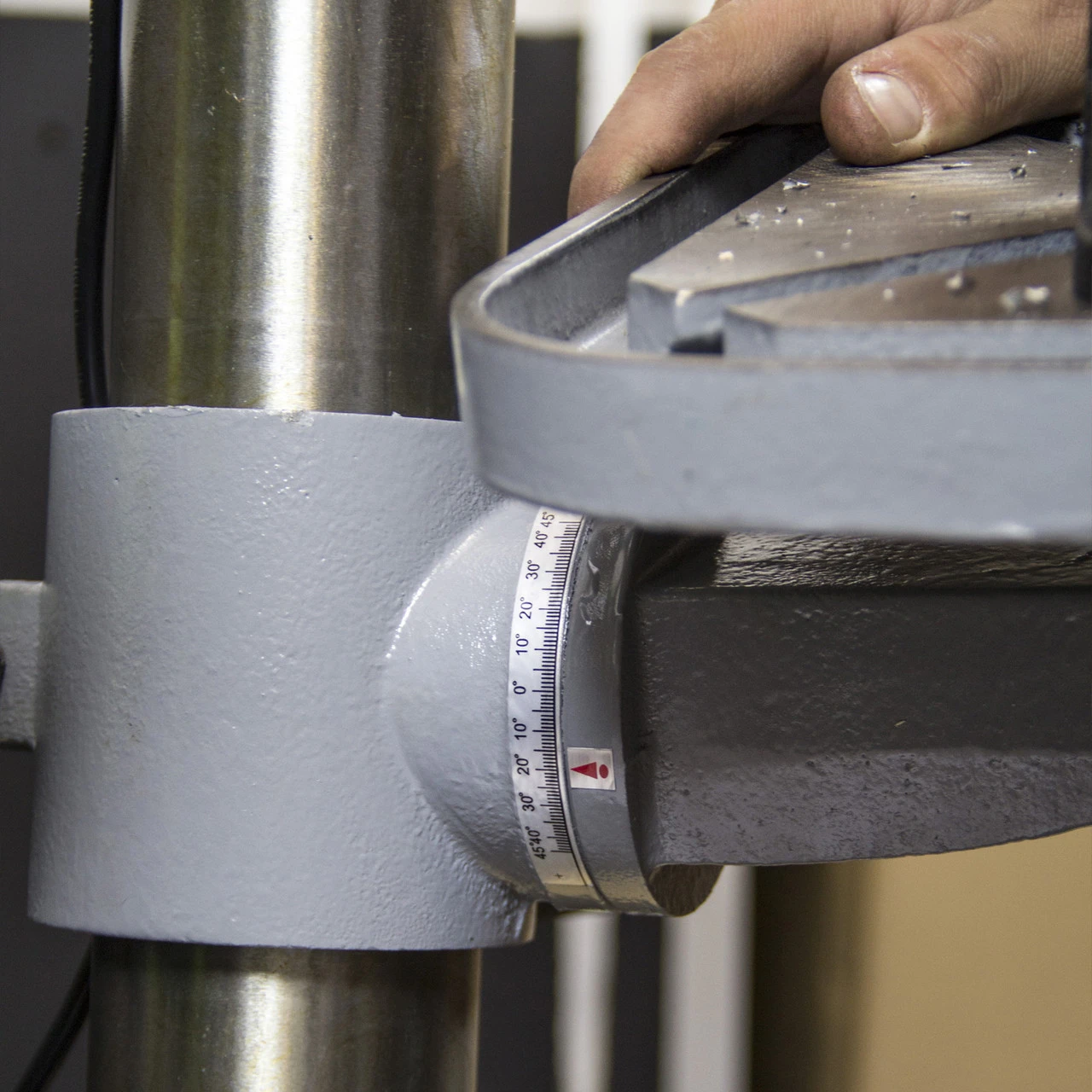 - Safety interlock switch |Allows the user to adjust the motor belt with confidence knowing the drill cannot start-up accidentally.
