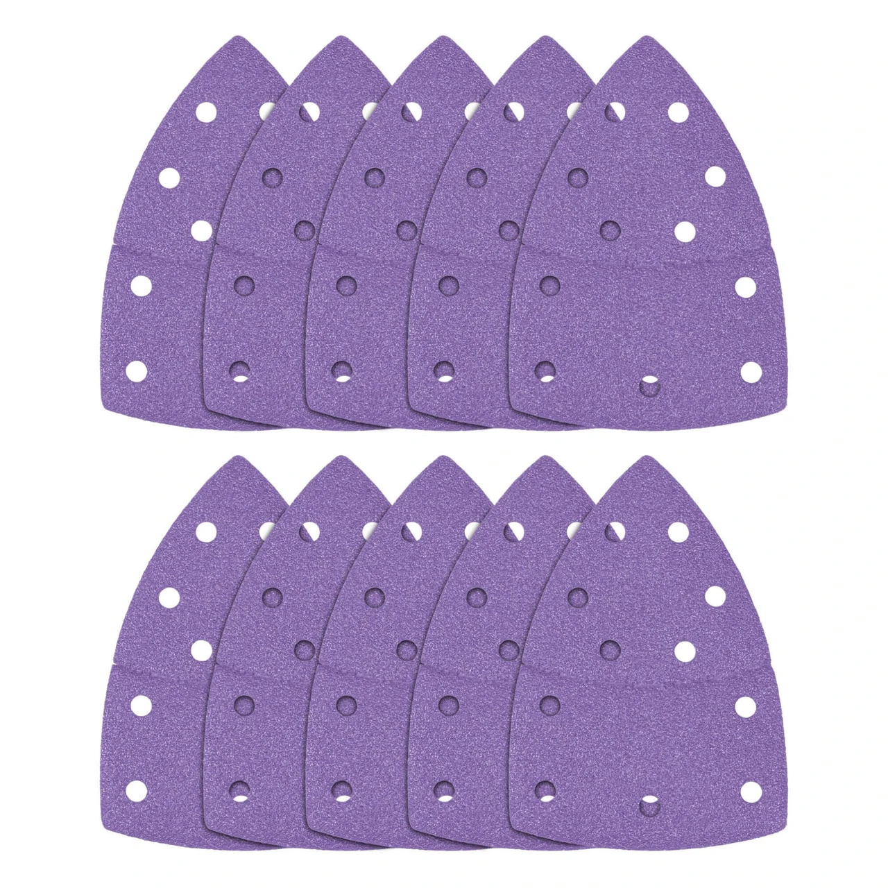The Trend 102mm x 151mm Detail sanding sheet 40 grit is a Heavy Duty Zirconium grit sanding sheet designed for 102mm x 151mm Detail sanders. With a harder grit composition compared to aluminium oxide rivals. You can expect a cleaner sanding session due to the 11-hole punch pattern for effective extraction and compatibility on all popular brands of detail sanders. Due to their hook and loop backers, you can easily switch pads from 40 up to 240 Grit and different grit types depending on the finish that you desire on your workpiece.