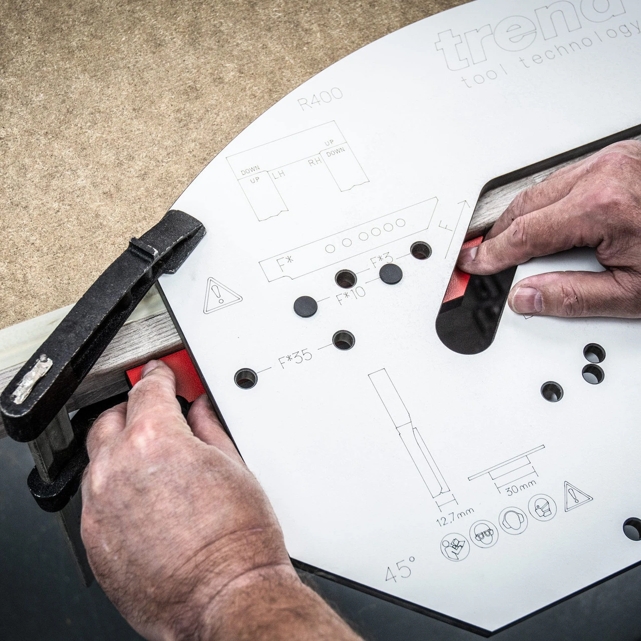 - 8.65mm Marking Gauge helps to perfectly position the jig for peninsula, radius and 45° corner finishing.