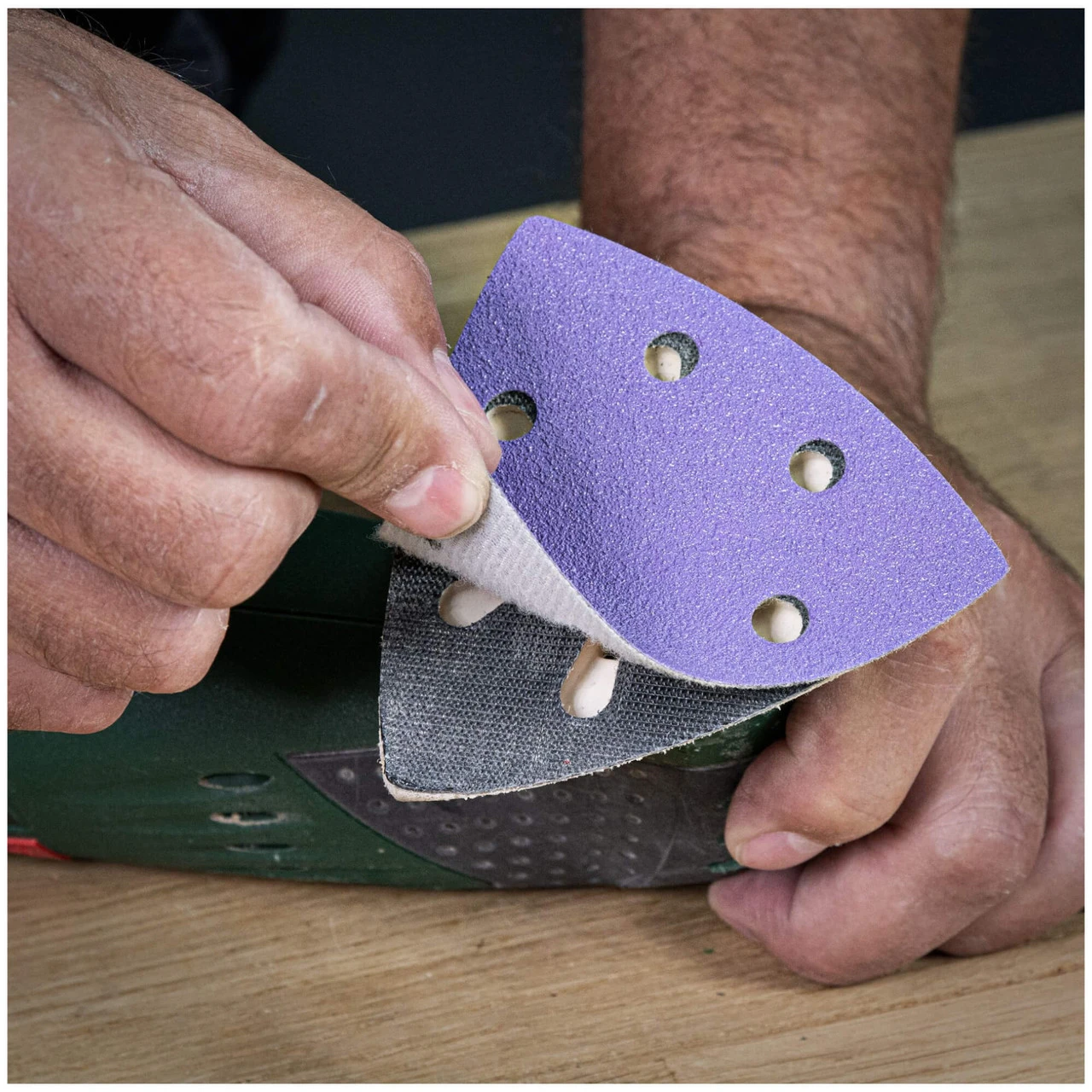 The Trend Delta Sanding Sheets 93mm 180 grit is a Heavy Duty Aluminium Oxide abrasive designed for 93mm x 93mm hook and loop sanders and multi-tools. You can expect a longer lifespan and superior performance with a sharp and self-sharpening abrasive, and with a rotatable sheet you can prolong the detailing tip wear 3 times. Due to their Flexible Film backers and hook and loop design, you can easily switch pads from 40 up to 240 Grit depending on the finish that you desire on your workpiece.