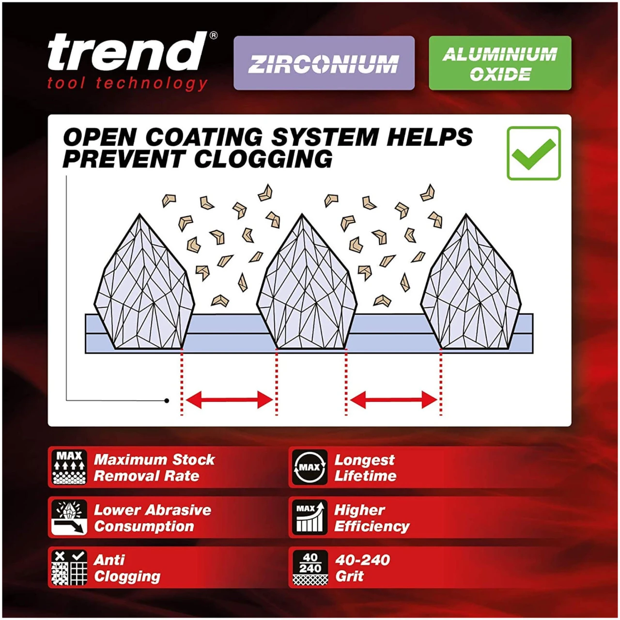 - The use of premium grits means that Trend Zirconium Discs can outperform standard abrasives and has a longer lifespan of up to 4 times.