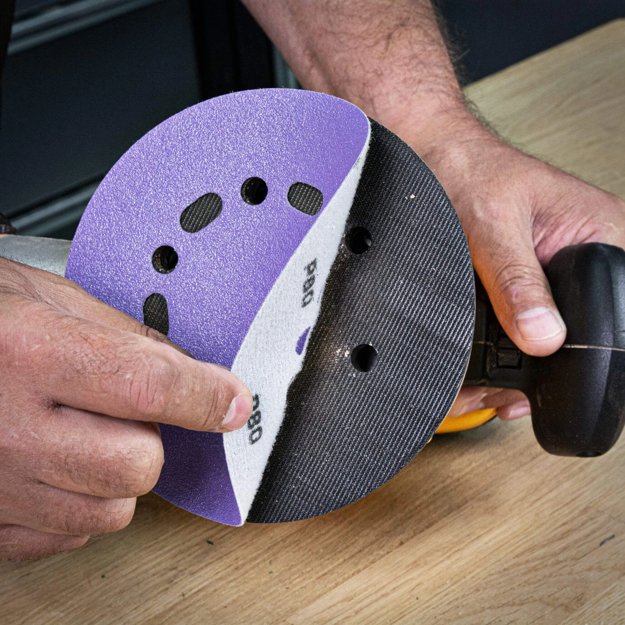 The Trend Random Orbital Sanding Discs 125mm 240 grit is a Heavy Duty Zirconium sanding discs designed for 125mm Random Orbital sanders. With a harder grit composition compared to aluminium oxide rivals. You can expect a longer lifespan and superior performance with a sharp and self-sharpening abrasive. Due to their Flexible Film backers, you can easily switch pads from 40 up to 240 Grit depending on the finish that you desire on your workpiece.