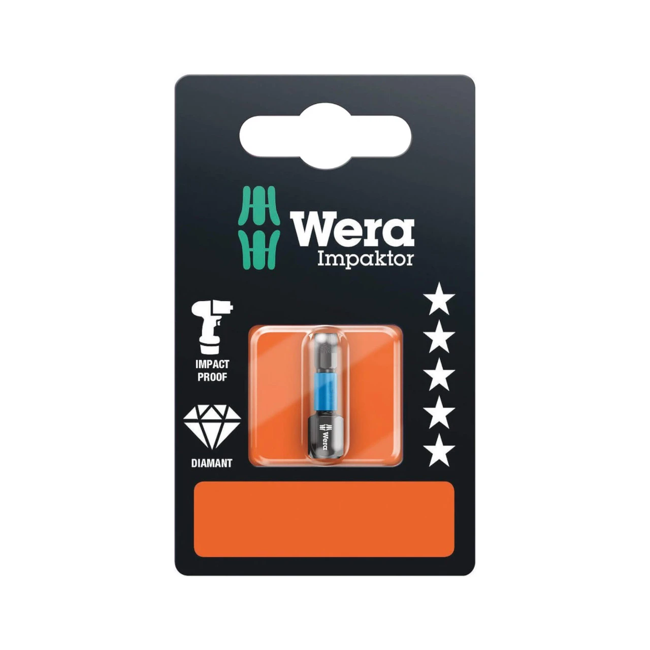 Wera 840/1 Impaktor Bit Hex-plus 4mm x 25mm Carded is a high-quality bit for socket head screws, offering way above average performance throughout the service life. This product has been given enhanced friction resistance thanks to the rough diamond-particle coating on the bit tip which prevents any slipping out of the screw head. Perfect to use with impact drivers.